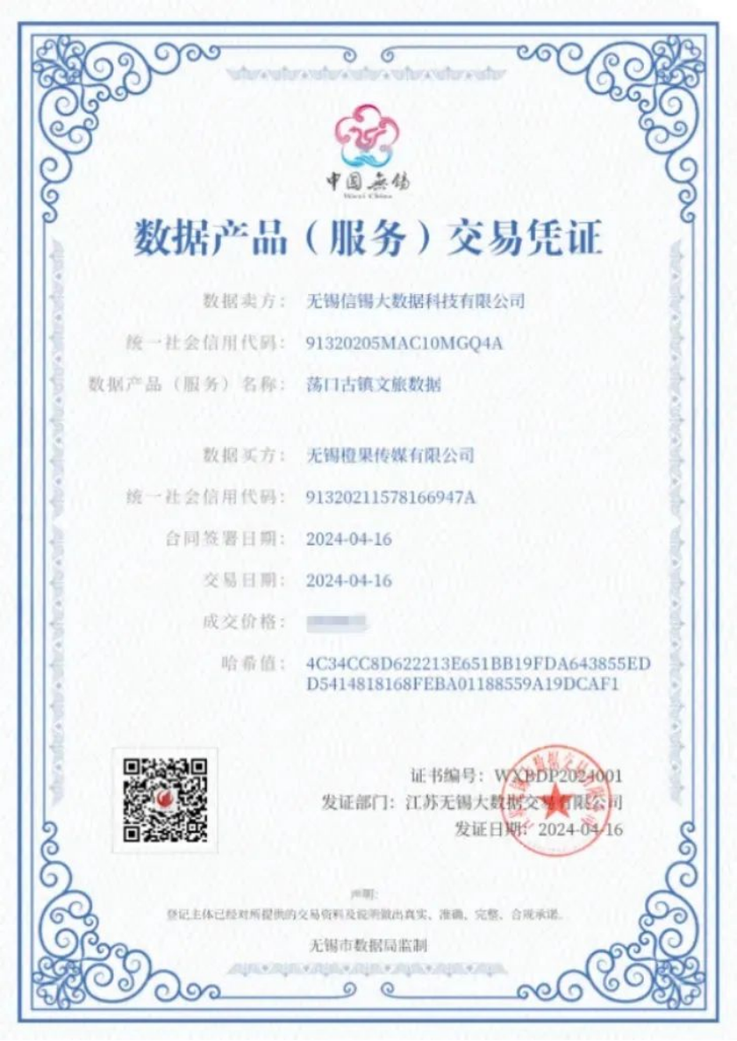 案例一:無錫破冰:首例文旅數(shù)據(jù)產(chǎn)品掛牌交易