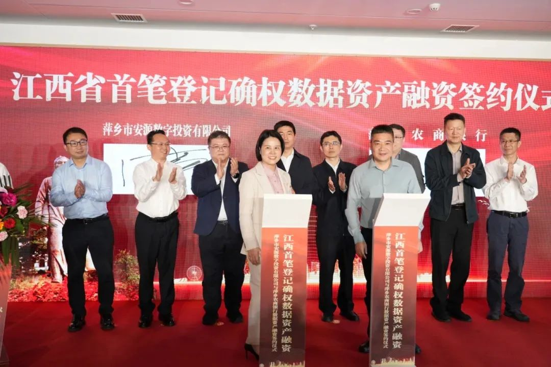 4月22日上午,江西省首筆登記確權(quán)數(shù)據(jù)資產(chǎn)融資——萍鄉(xiāng)市安源數(shù)字投資有限公司與萍鄉(xiāng)市農(nóng)商行數(shù)據(jù)資產(chǎn)質(zhì)押融資貸款簽約儀式正式啟動(dòng),開啟了江西省數(shù)據(jù)資產(chǎn)化新篇章。省地方金融管理局副局長徐鶴飛,省信息中心(大數(shù)據(jù)中心)副主任孫楊,市政府副市長、市公安局局長程海騰,中國聯(lián)通江西省分公司副總經(jīng)理熊吉昌等省市領(lǐng)導(dǎo)和區(qū)委副書記、區(qū)長邱偉等安源區(qū)有關(guān)領(lǐng)導(dǎo)出席儀式。