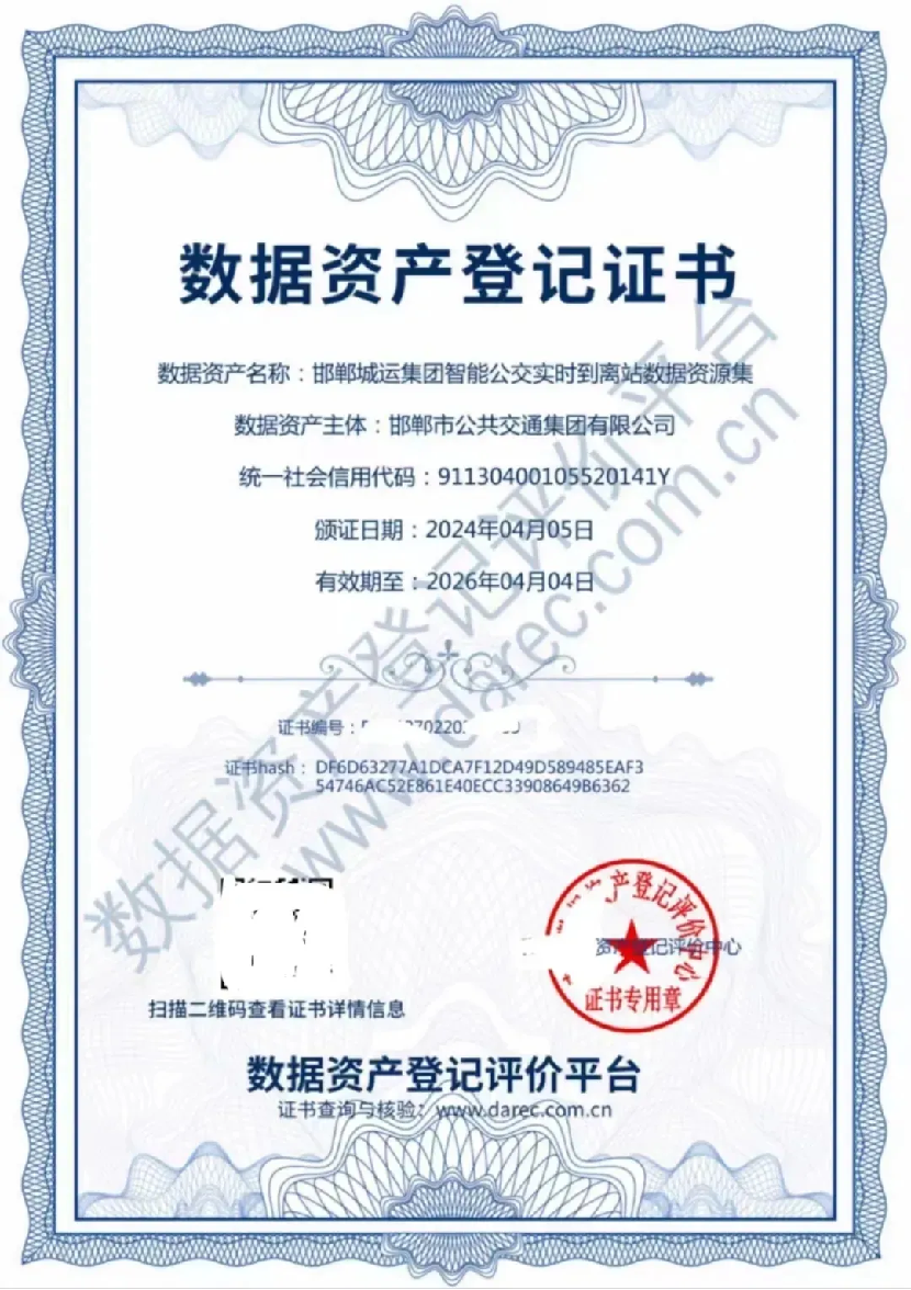 4月5日,邯鄲市城市投資運(yùn)營集團(tuán)有限公司(以下簡稱:市城運(yùn)集團(tuán))成功取得《數(shù)據(jù)資產(chǎn)登記證書》,順利完成登記入表工作,成為邯鄲市首家數(shù)據(jù)資產(chǎn)入表落地案例,為推動(dòng)數(shù)據(jù)要素市場發(fā)展提供了有益借鑒。